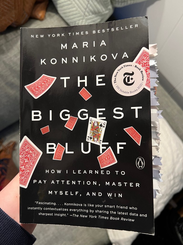 This week’s book is another account of a psychology PhD turned poker player. Last week’s author (Annie Duke, “Thinking in Bets”) took up the game as a way to maybe make a little cash while health issues interrupted her dissertation work, while this week’s author was drawn to poker as a way to explore: how can we know the difference between luck and skill, and how far can we tame luck through skill? Whereas “Thinking in Bets” was more of a dry (but useful!) accounting of cognitive biases and what are the habits and values that lead to good decision making processes regardless of outcome, “The Biggest Bluff” is much more focused on how to emotionally and psychologically train yourself to actually adhere to these known good decision-making ingredients. Practice vs theory. It also spends much more time illustrating these concepts through the story of the author’s personal journey, which makes for a fun adventure.